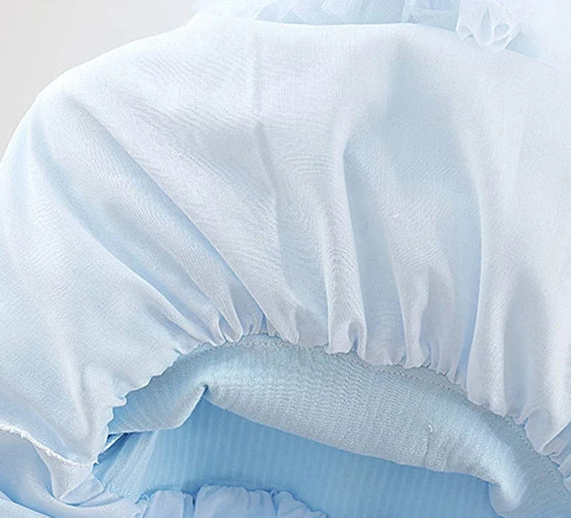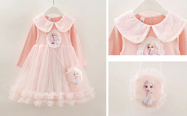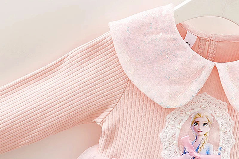 This Disney Elsa Princess Dress features a Peter Pan collar, knitted splicing, and a pleated mesh design. Made from a cotton blend, it offers a comfortable A-line fit with full sleeves, ideal for girls. The dress reaches mid-calf length, true to size, and is crafted without harmful chemicals, making it perfect for birthday celebrations and seasonal wear.