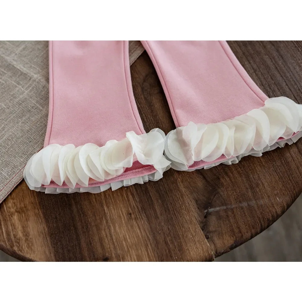 Happy Birthday To Me Top & Lace Flared Pants Two-piece Set