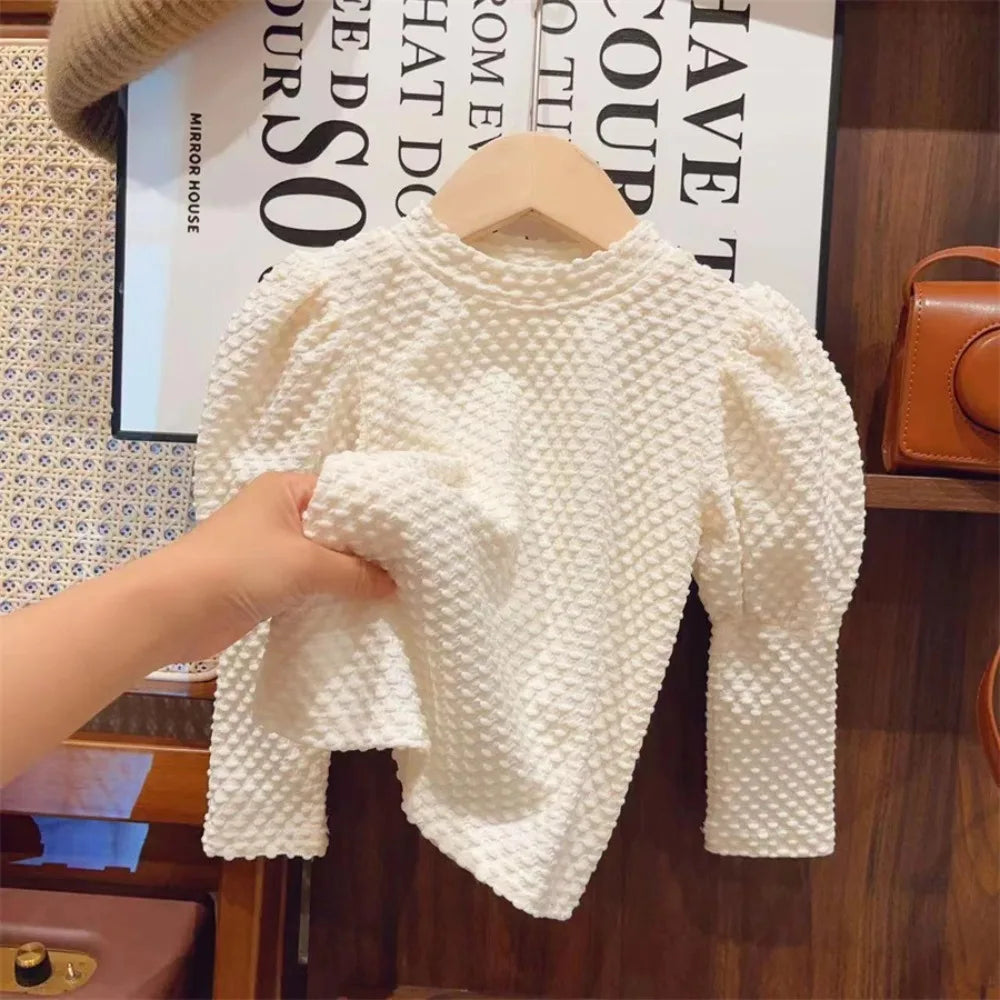 Bubble Sleeve White Bottom Shirt & Lace Tank Top Dress Two Piece Set