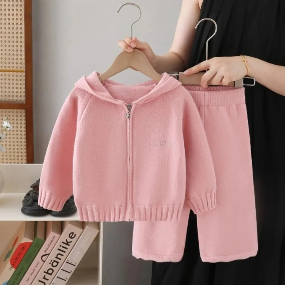 Knitted Hooded Sweatshirt & Pants 2-piece Set