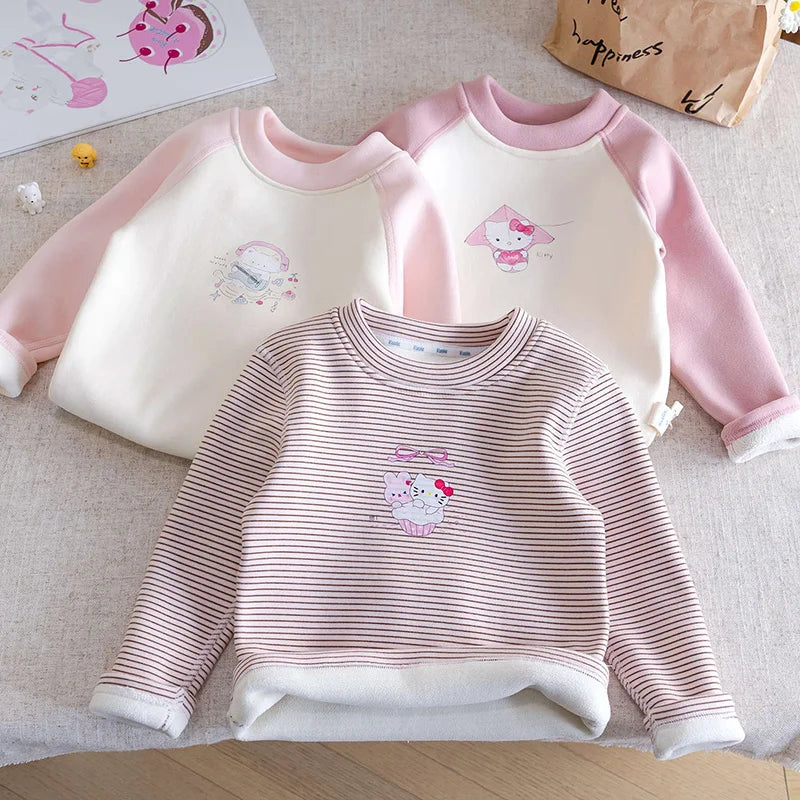 Cozy velvet tee for girls aged 9M-6Y. Features a soft cotton blend with long sleeves, perfect for autumn and winter wear. Round neckline, true-to-size fit, and charming cartoon design in a cute style. Durable construction ideal for active play and everyday comfort.