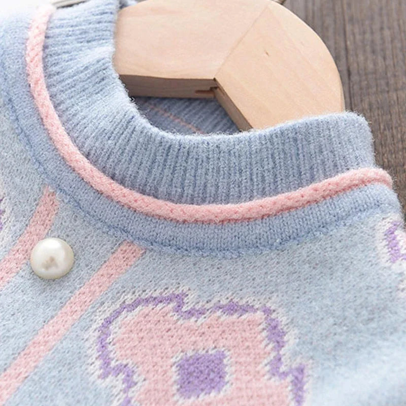 Flower Winter Thick Sweater & Pleated Skirt Two-piece Set