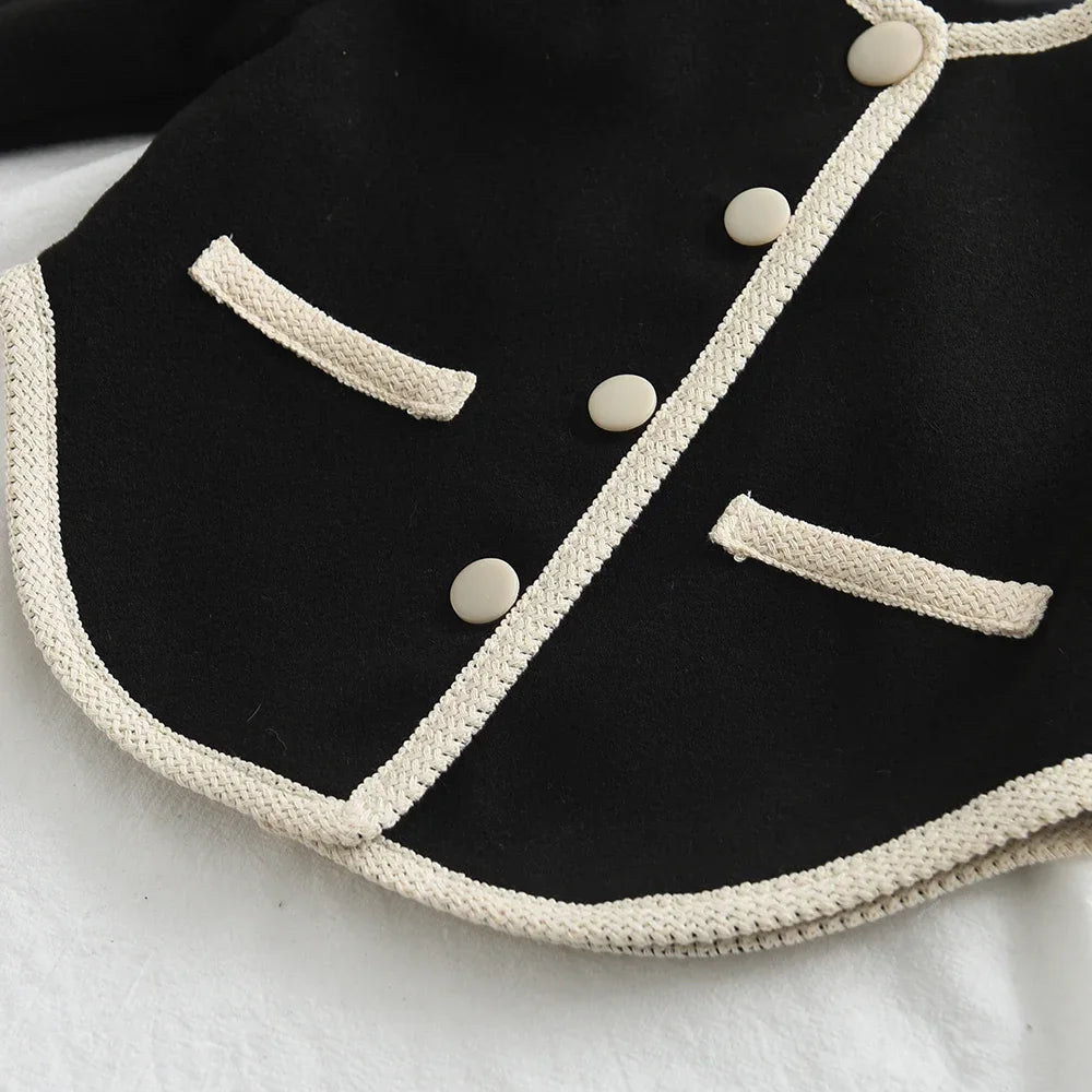 Black Edge Round Neck Button Top & Skirt Two Piece Set