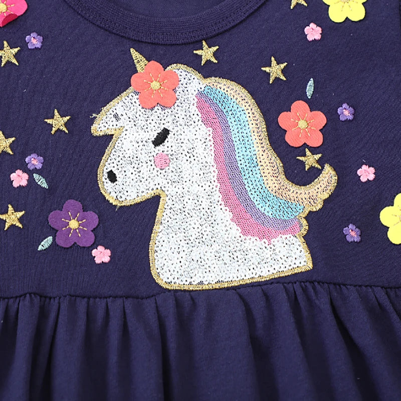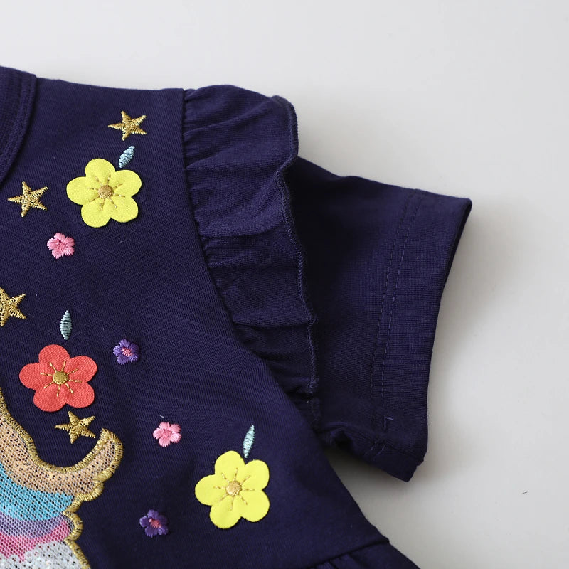 Navy Blue Unicorn 100% Cotton Summer Dress