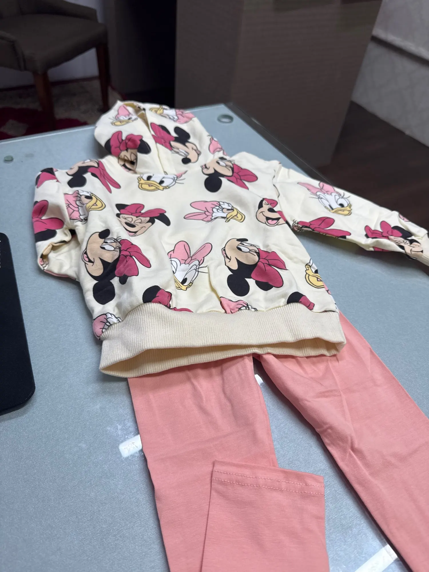 This two-piece children's set features a soft, pure cotton pullover and long pants with a playful Mickey Mouse design. Designed for ages 3 months to 6 years, it offers a comfortable fit with full sleeves and an easy pullover style. Ideal for casual wear in autumn & winter, this girls outfit combines comfort and durability for everyday play.